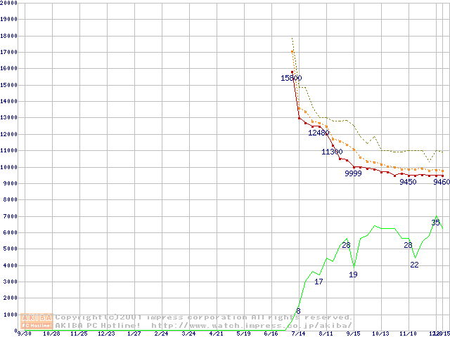 U6 (5400rpm,UltraATA/100 2MB 40GB/Platter)の最安値推移
