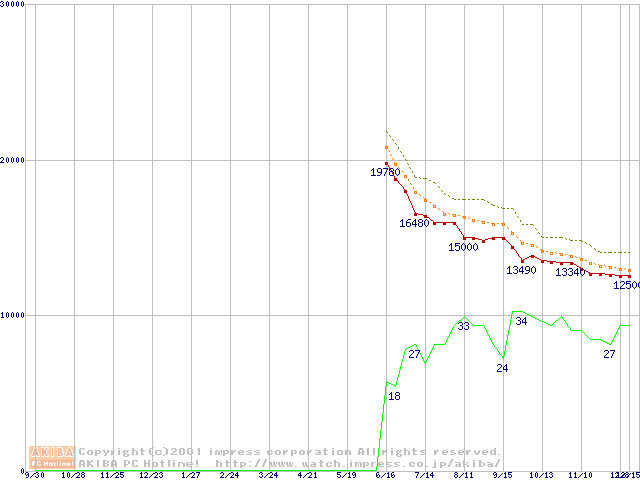 U6 (5400rpm,UltraATA/100 2MB 40GB/Platter)の最安値推移