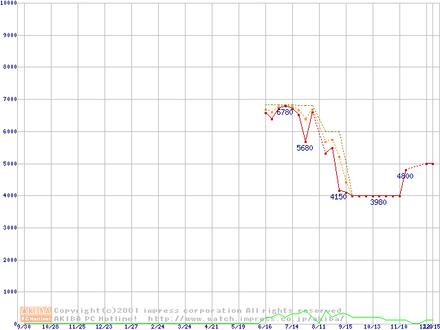 Socket 370 (PGA,FSB 100MHz,L2 64KB)の最安値推移