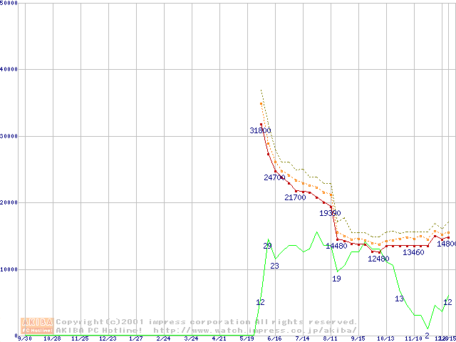 Athlon 1.4GHz(FSB266) (Thunderbird) バルクの価格推移