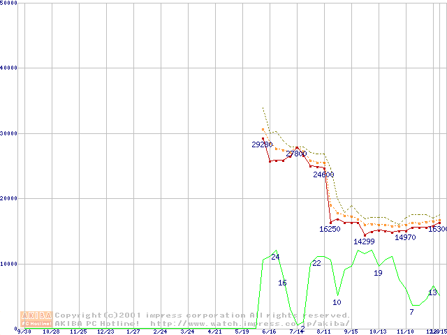 Athlon 1.4GHz(FSB266) (Thunderbird) リテールパッケージの価格推移
