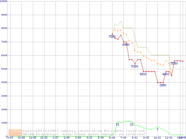 Socket 370 (PGA,FSB 100MHz,L2 64KB)の最安値推移