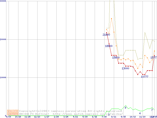 PC133 SDRAM DIMM CasLatency=3 ECC対応 Registeredタイプの最安値推移