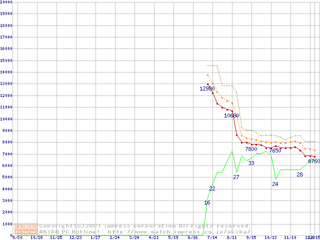 Celeron 900MHz FC-PGA リテールパッケージの価格推移