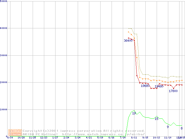 Pentium 4 1.6GHz(423pin)リテールパッケージ(RIMMなし)の価格推移