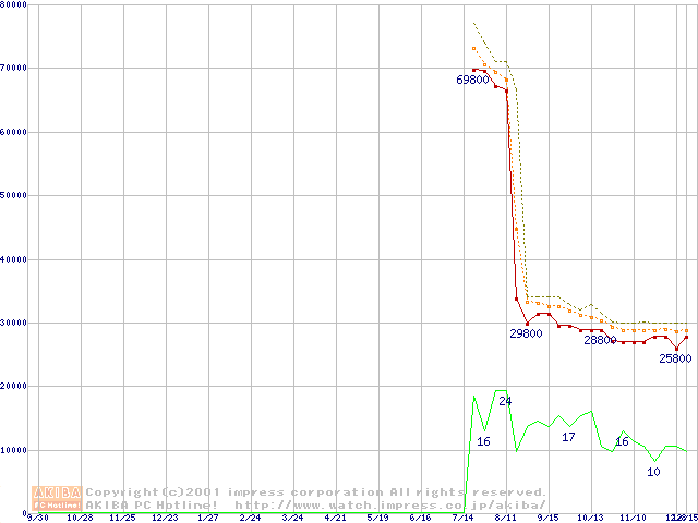 Pentium 4 1.8GHz(423pin)リテールパッケージ(RIMMなし)の価格推移