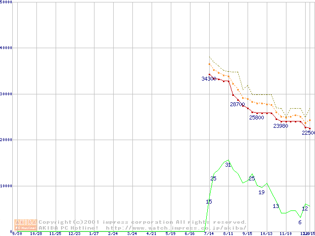 Pentium III 1.13AGHz FC-PGA2 リテールパッケージの価格推移
