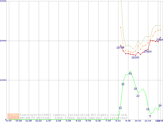 Pentium 4 1.5GHz(478pin)リテールパッケージの価格推移