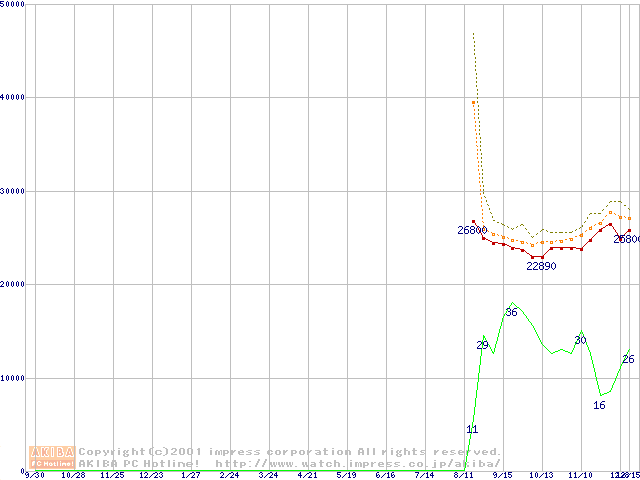 CPU主要製品(最安値2万円~3万円未満)の最安値推移