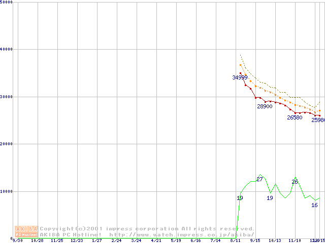 WD Caviar (7200rpm,UltraATA/100,2MB)の最安値推移
