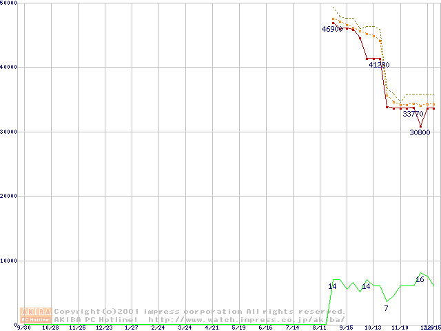 Pentium 4 1.9GHz(423pin)リテールパッケージ(RIMMなし)の価格推移