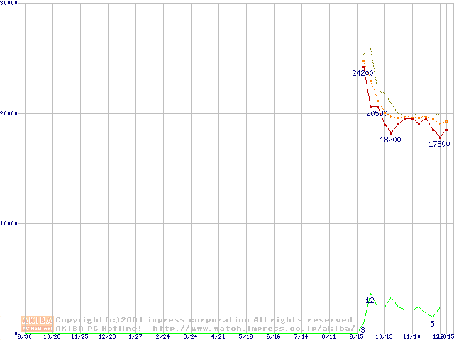 Socket 370 (FC-PGA,FSB 100MHz,L2 256KB)の最安値推移
