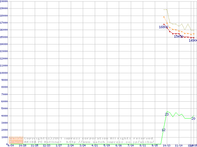 Socket A (Palomino,OPGA,FSB 266MHz,L2 256KB)の最安値推移