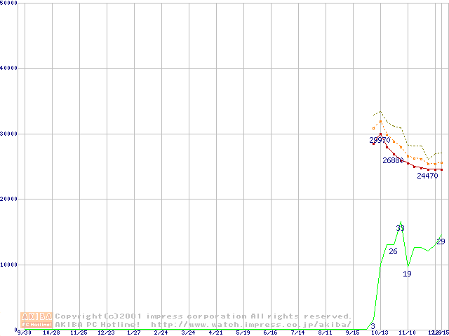 Socket A (Palomino,OPGA,FSB 266MHz,L2 256KB)の最安値推移