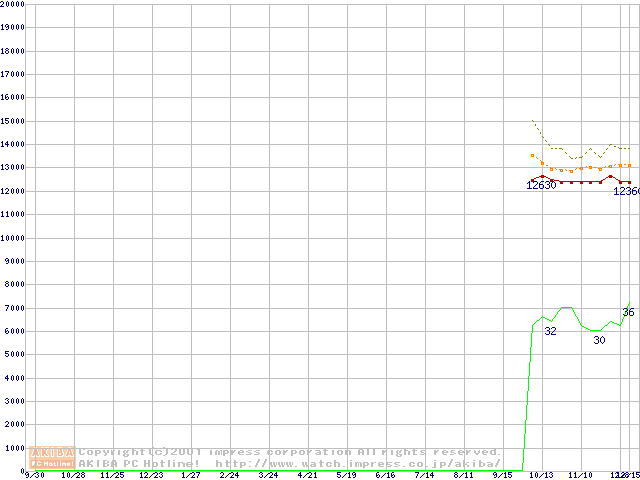 Celeron 1.2GHz FC-PGA2 リテールパッケージの価格推移