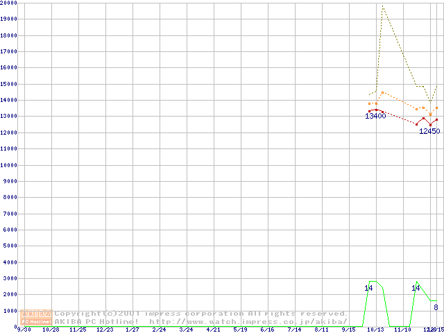 Travelstar 20GN (9.5mm,4200rpm,UltraATA/66,2MB/512KB/256KB)の最安値推移