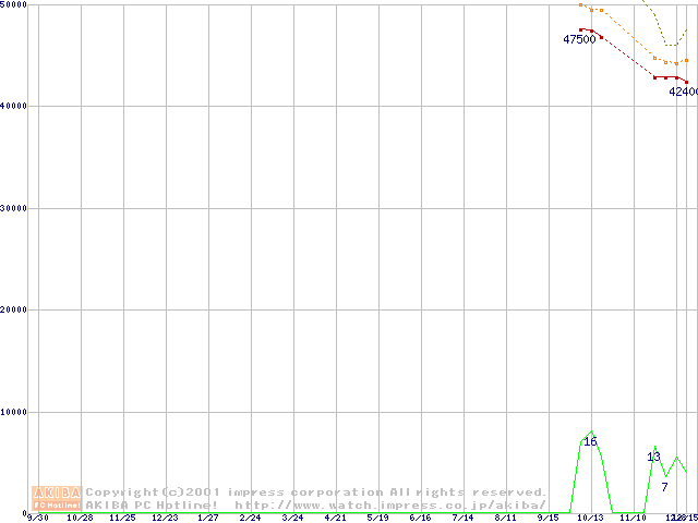 Travelstar 48GH (12.5mm,5400rpm,UltraATA/100,2MB,流体軸受)の最安値推移