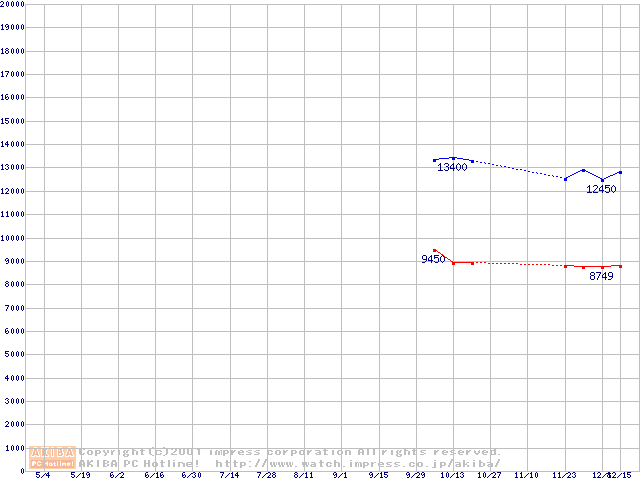 | [↑前グラフ]: | Travelstar 15GN (9.5mm,4200rpm,UltraATA/100,512KB,流体軸受)の最安値推移 |