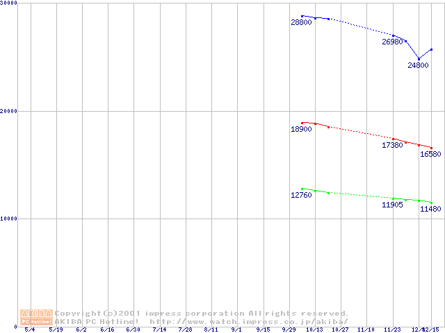 | [↑前グラフ]: | Travelstar 20GN (9.5mm,4200rpm,UltraATA/66,2MB/512KB/256KB)の最安値推移 |