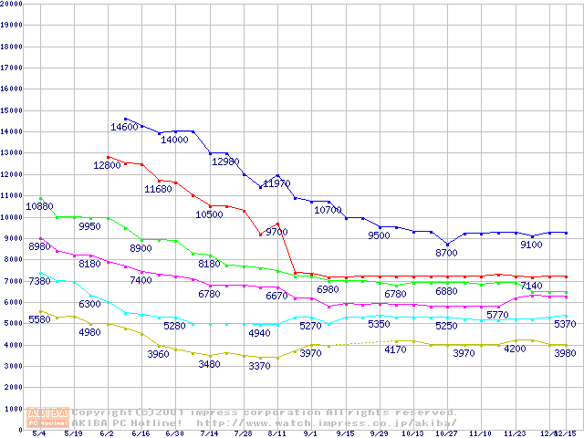 | [↓次グラフ]: | Socket A (Spitfire,PGA,FSB 200MHz,L2 64KB,1.4V)の最安値推移 |
