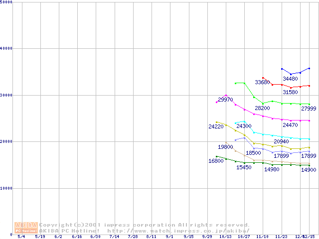 | [↑前グラフ]: | Socket 370 (PPGA,FSB 66MHz,L2 128KB)の最安値推移 |