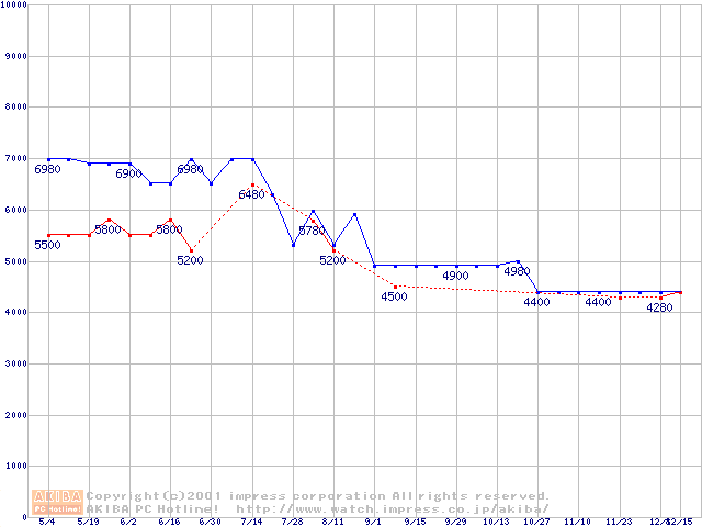 | [↑前グラフ]: | Socket 370 (FC-PGA,FSB 66MHz,L2 128KB)の最安値推移 |