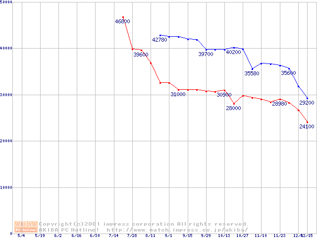 | [↓次グラフ]: | Socket 370 (FC-PGA2,FSB 133MHz,L2 256KB)の最安値推移 |