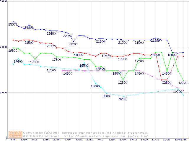 | [↓次グラフ]: | Slot 1 (SECC2,FSB 100MHz,L2 256KB)の最安値推移 |