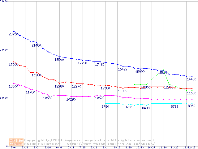 | [↓次グラフ]: | WD Caviar(Special Edition) (7200rpm,UltraATA/100,8MB)の最安値推移 |