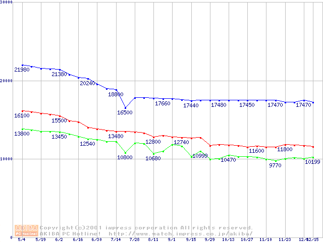 | [↓次グラフ]: | DiamondMax D540X (5400rpm,UltraATA/133,40GB/Platter)の最安値推移 |