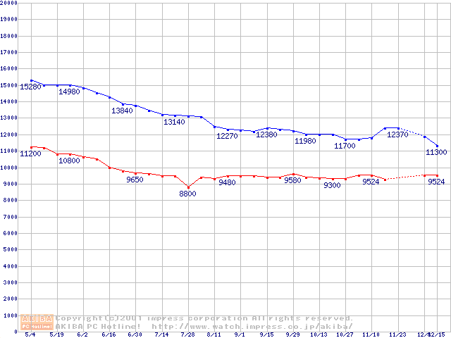 | [↓次グラフ]: | U6 (5400rpm,UltraATA/100 2MB 40GB/Platter,流体軸受)の最安値推移 |