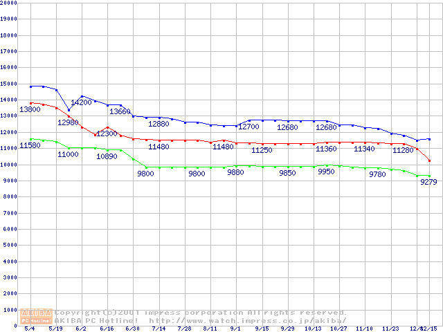 | [↓次グラフ]: | WD Caviar (5400rpm,UltraATA/100)の最安値推移 |