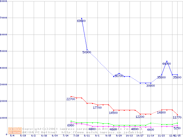 | [↑前グラフ]: | PC100 SDRAM DIMM CasLatency=2 ECC対応の最安値推移 |