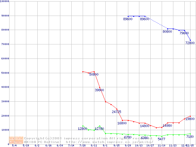 | [↑前グラフ]: | PC2100(DDR266) DDR SDRAM DIMMの最安値推移 |