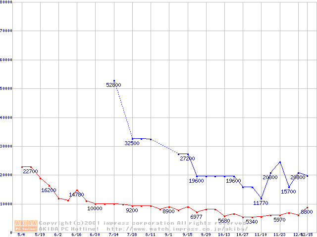 | [↓次グラフ]: | PC2700(DDR333) DDR SDRAM DIMMの最安値推移 |