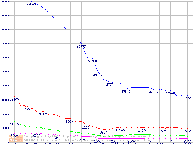 | [↓次グラフ]: | PC800 DRDRAM RIMM ECC対応の最安値推移 |