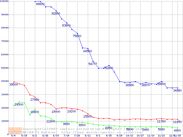 | [↑前グラフ]: | PC800 DRDRAM RIMMの最安値推移 |