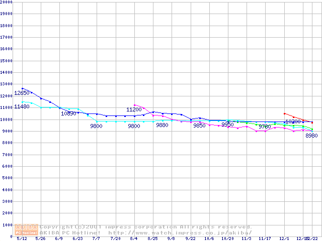 | [↑前グラフ]: | HDD 10GB~20GB未満(7200rpmクラス)の最安値推移 |