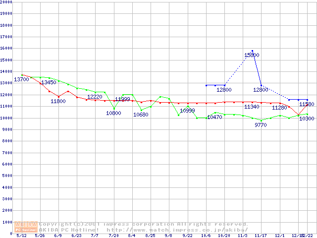 | [↑前グラフ]: | HDD 20GB~30GB未満(7200rpmクラス)の最安値推移 |