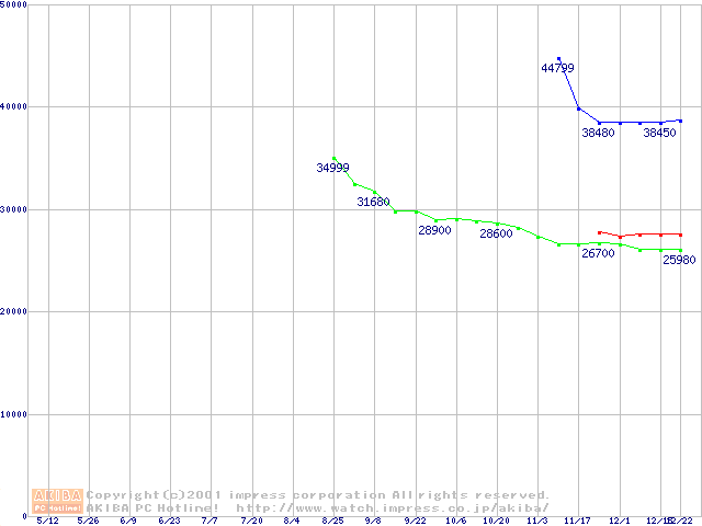 メモリ主要製品の最安値推移