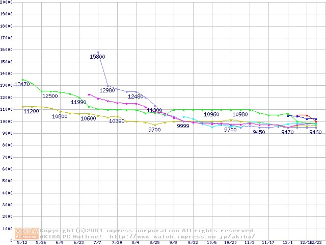 | [↓次グラフ]: | HDD 60GB~80GB未満(5400rpmクラス)の最安値推移 |