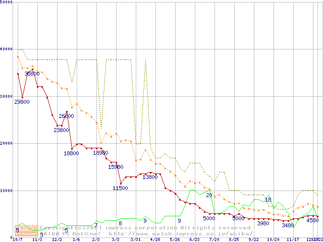PC133 SDRAM DIMM CasLatency=3 ECC対応の最安値推移