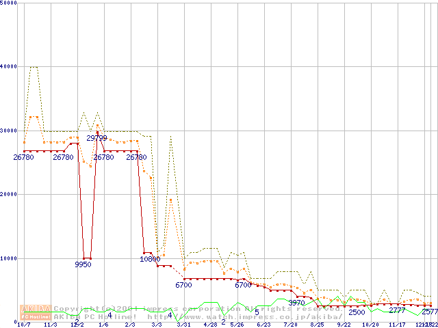 PC800 DRDRAM RIMMの最安値推移