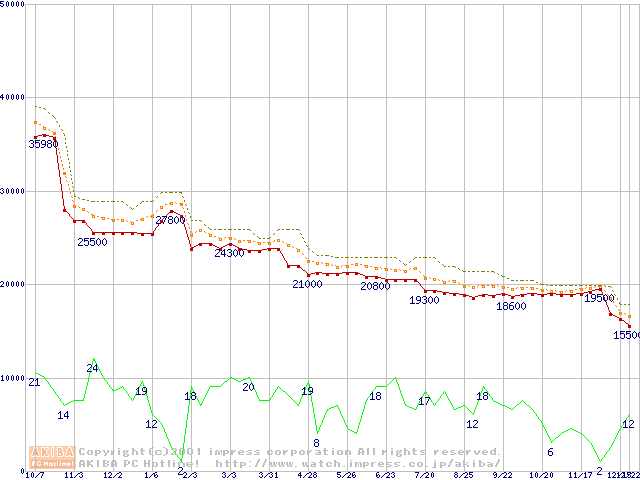 Pentium III 850MHz SECC2 リテールパッケージの価格推移
