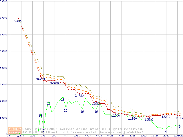 Athlon 1.2GHz(FSB200) (Thunderbird) バルクの価格推移