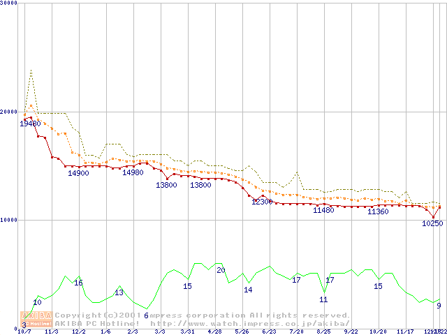 WD Caviar (7200rpm,UltraATA/100,20GB/Platter)の最安値推移
