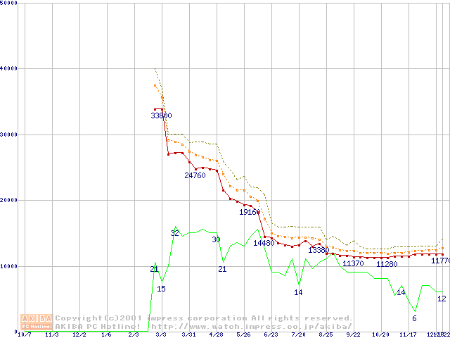 Athlon 1.2GHz(FSB266) (Thunderbird) バルクの価格推移
