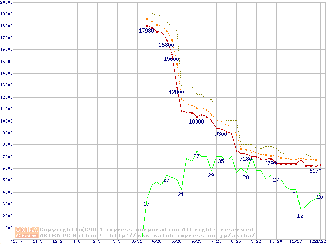 Celeron 850MHz FC-PGA リテールパッケージの価格推移