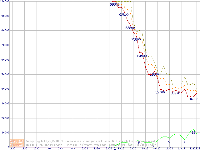 PC800 DRDRAM RIMM ECC対応の最安値推移