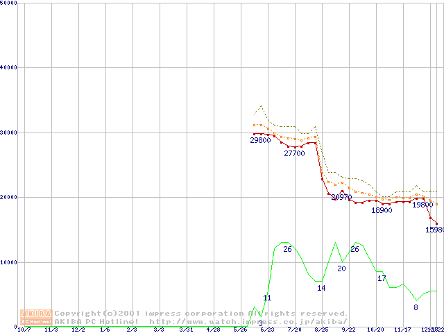 Socket A (Palomino,PGA,FSB 266MHz,L2 256KB)の最安値推移
